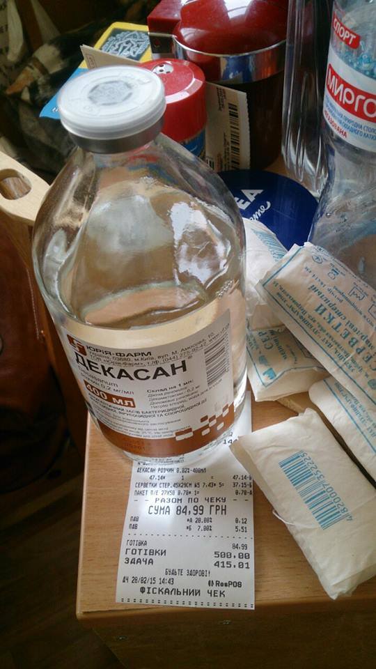За кошти пані Богдани волонтери ініціативи "Герої АТО" придбали та передали пораненому Василю рідину для промивання ран. А пан Валентин отримав від волонтерів костюм та ліки для очей.