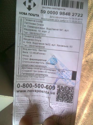 Волонтерка ініціативи "Герої АТО" Ольга Фещенко отримала посилку із м. Щастя для опікового центру для поранених бійців із зони АТО.