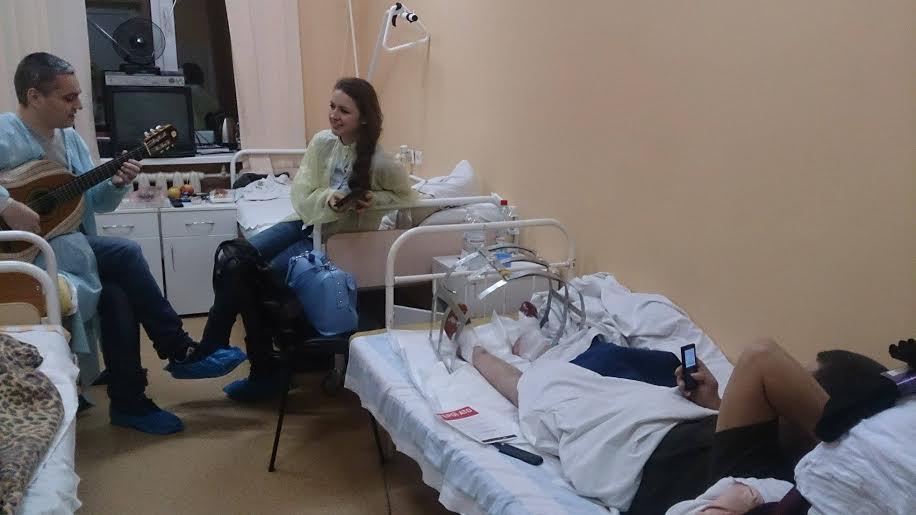 Волонтери дякують Юрію Кравчуку за гру на гітарі та Кості Сові "Київська школа фотографії" за спілкування з пораненими. Підняття бойового духу разом з митцями дають гарні результати, навіть військовий, який довгий час не спілкувався ні з ким, співав патріотичні пісні.