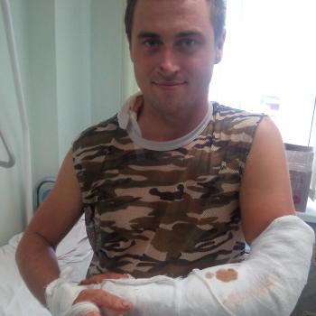 На військову службу чоловіка призвали 7 серпня 2014 року (від Маловисківського районного військкомату). Захисник отримав множинні осколкові поранення живота, руки, залишився без ноги, у нього обпалено обличчя.