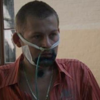 Людмила Вознюк із Лугинського району на Житомирщині вже третій тиждень не відходить від свого пораненого сина Сашка, який був мобілізований в Новоград-Волинську бригаду і потрапив під обстріл у зоні АТО на початку липня. До цього часу він так і не зміг добре пояснити матері, що тоді сталося і як отримав травми.