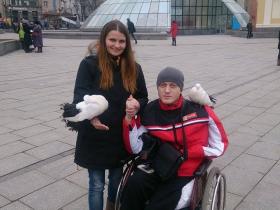 Лілія Бессонова, одна з представниць волонтерської ініціативи ГЕРОЇ АТО, організувала для Руслана Карпаця маленьку екскурсію у Межигір'я та прогулянку по Майдану Незалежності у столиці. Руслан родом з Тернопільщини (учасник АТО), наразі перебуває на лікуванні у військовому шпиталі м.Києва.