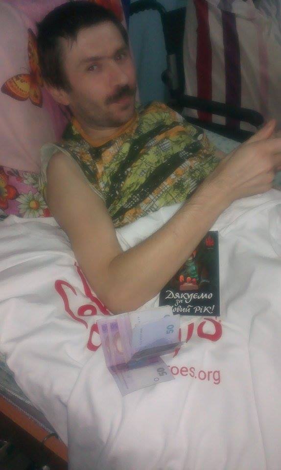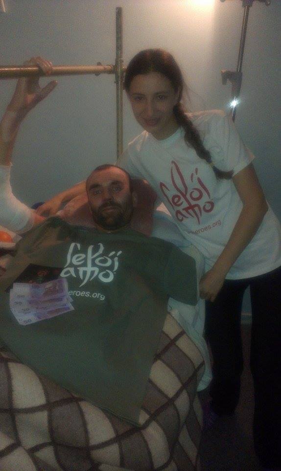 Волонтери інціативи "Герої АТО" передала по 500грн. та по футболці для поранених Андрія Романчака та Саші Бачинському.
